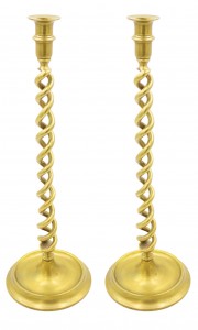 3 English Renaissance Style Pewter Candlesticks with Snuffers