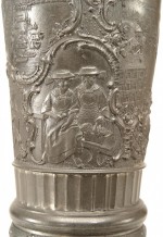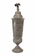 English Renaissance-style (19th Century) pewter chalice with scene in relief and eagle on lid..