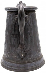 Style: English Materials & Techniques: Pewter, etched Category: Dining Room, Accessories/Décor/Bric-a-Brac Condition: Missing lid for tankard