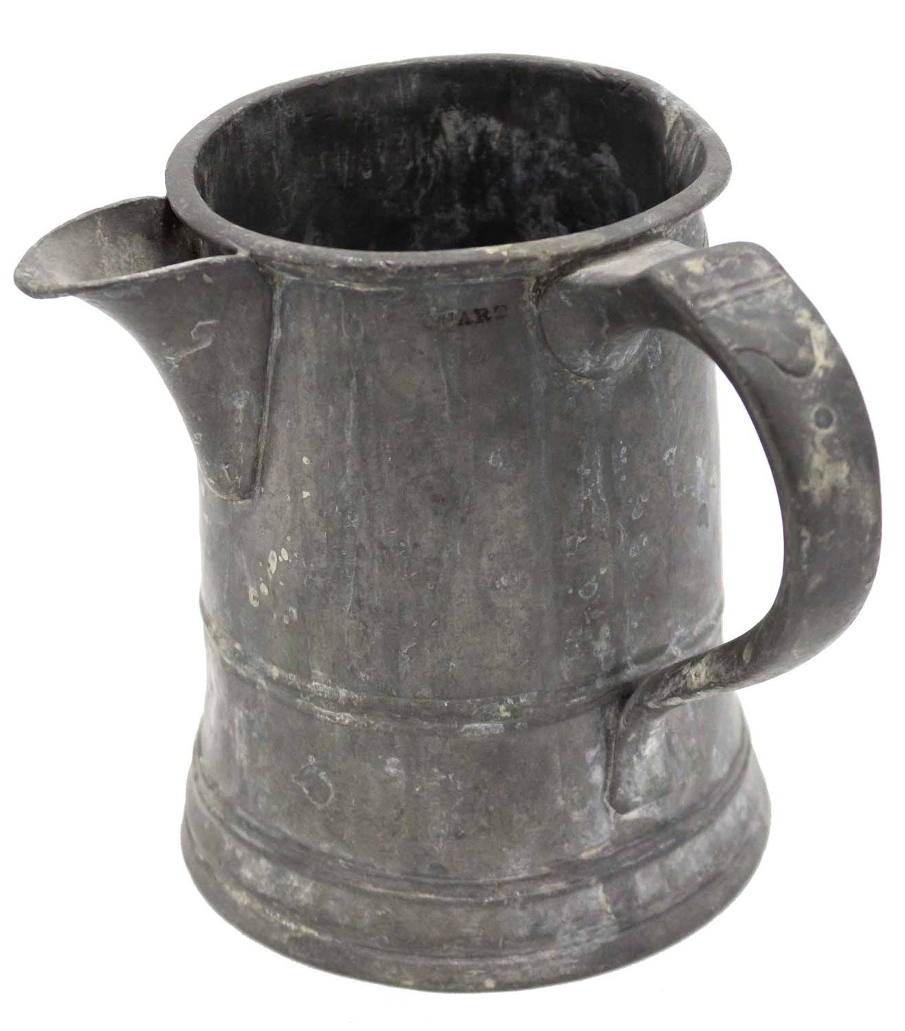 English Renaissance-style (19th Century) pewter pitcher (quart measure) with side handle..