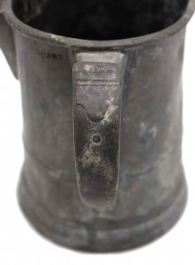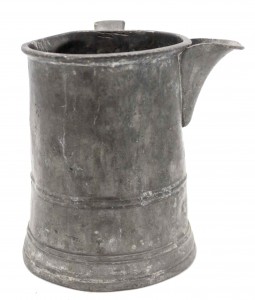 English Renaissance-style (19th Century) pewter pitcher (quart measure) with side handle.