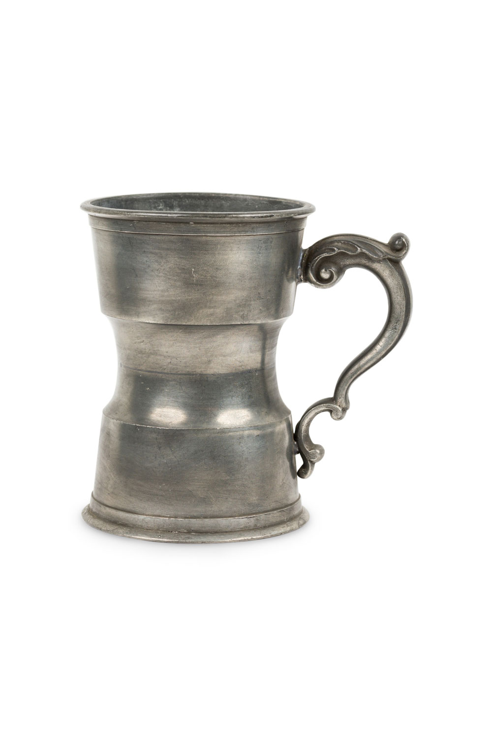 29 English Renaissance-style (20th Century) pewter shaped tankards with scroll handles. (PRICED EACH)