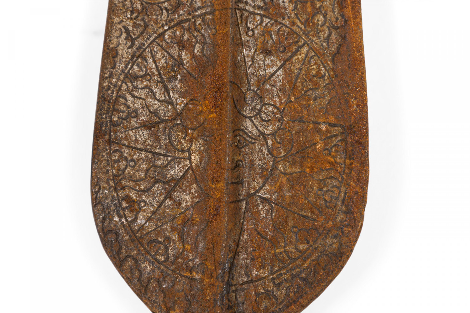 Style: English Materials & Techniques: Etched, iron, iron / wrought iron, tassel, wood Category: Sporting/Gaming Good; Wear consistent with age and use