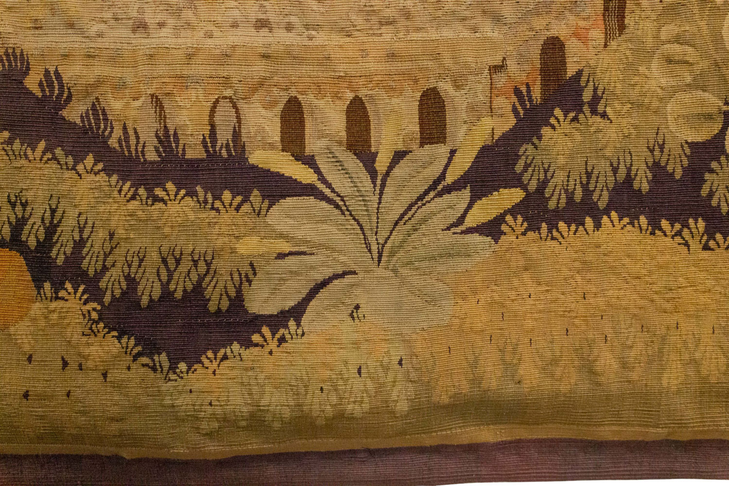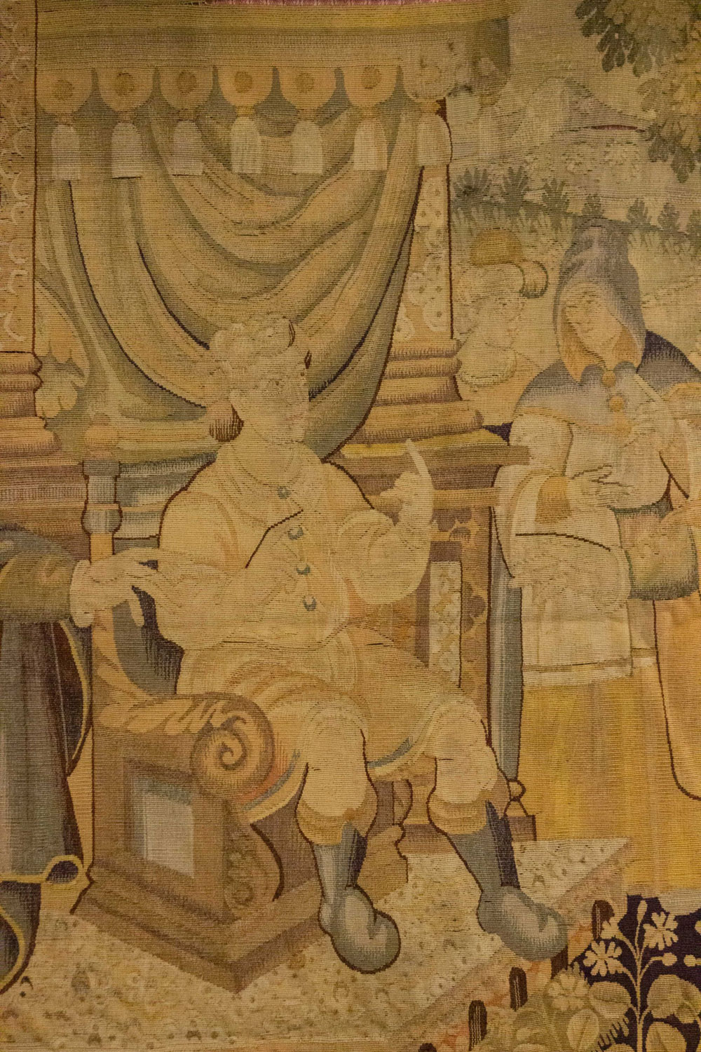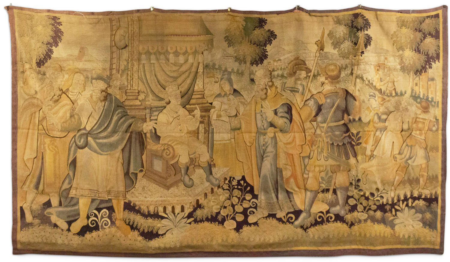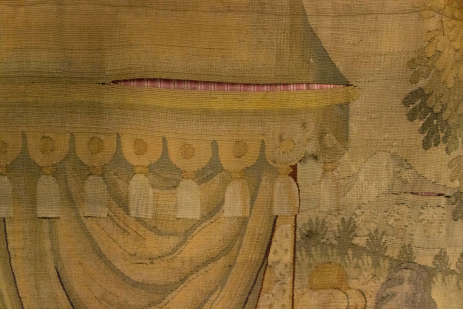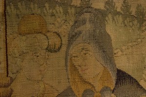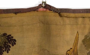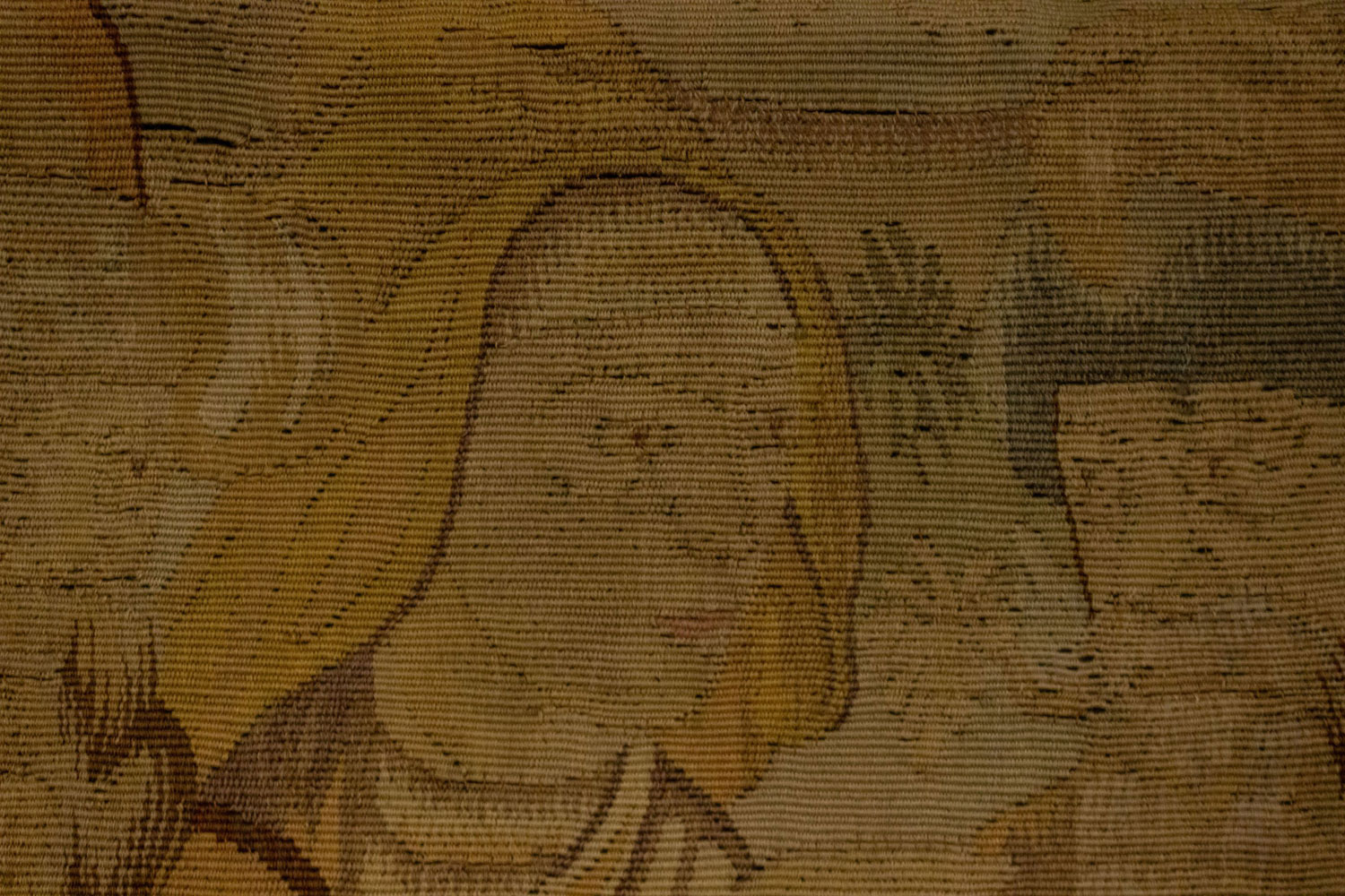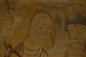 Style: English Materials & Techniques: Woven Category: Cleared Art, Rugs/Textile Condition: Antique condition, fading and wear - hangs by a combination of staggered carpet clips & rings sewn in on the back