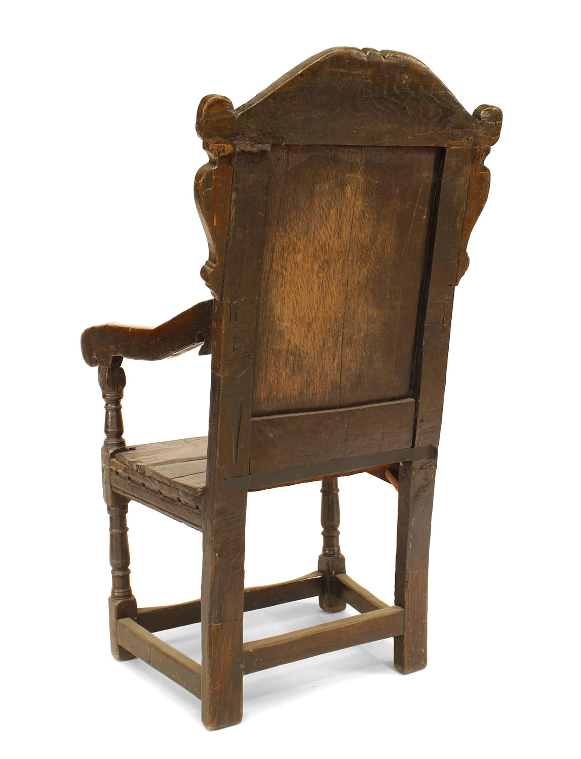 English Renaissance (17th Cent) Wainscot style oak arm chair with diamond designed carved back. (repairs to back).