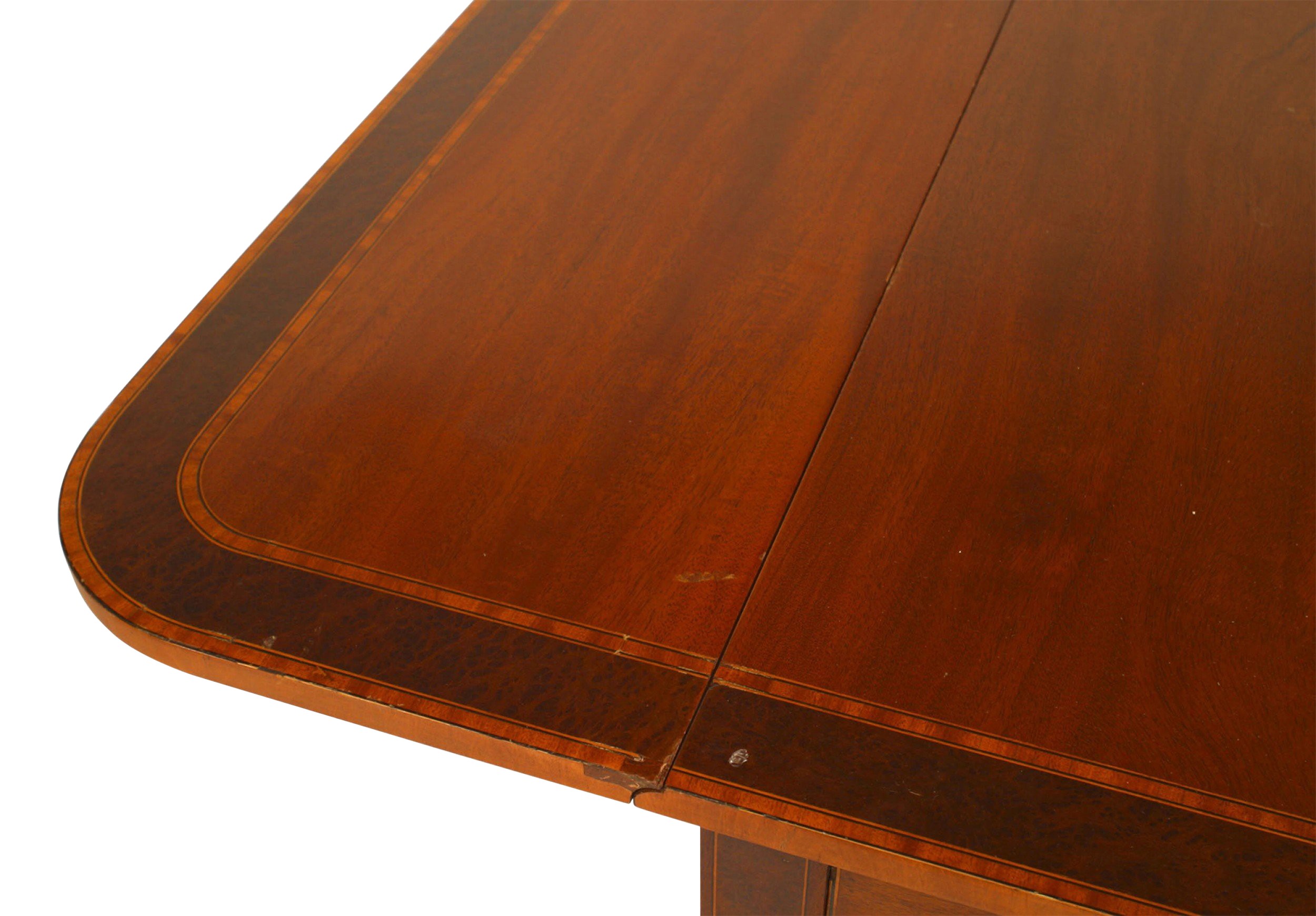 Style: English Materials & Techniques: Inlaid, mahogany Category: Tables Condition: Antique condition with light surface damage Good; Wear consistent with age and use
