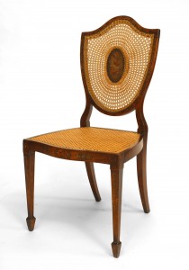 Pair of English Sheraton Shield back Side Chairs