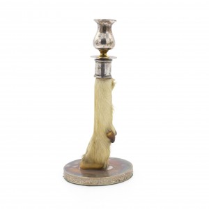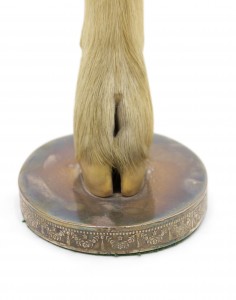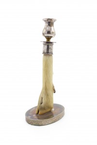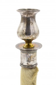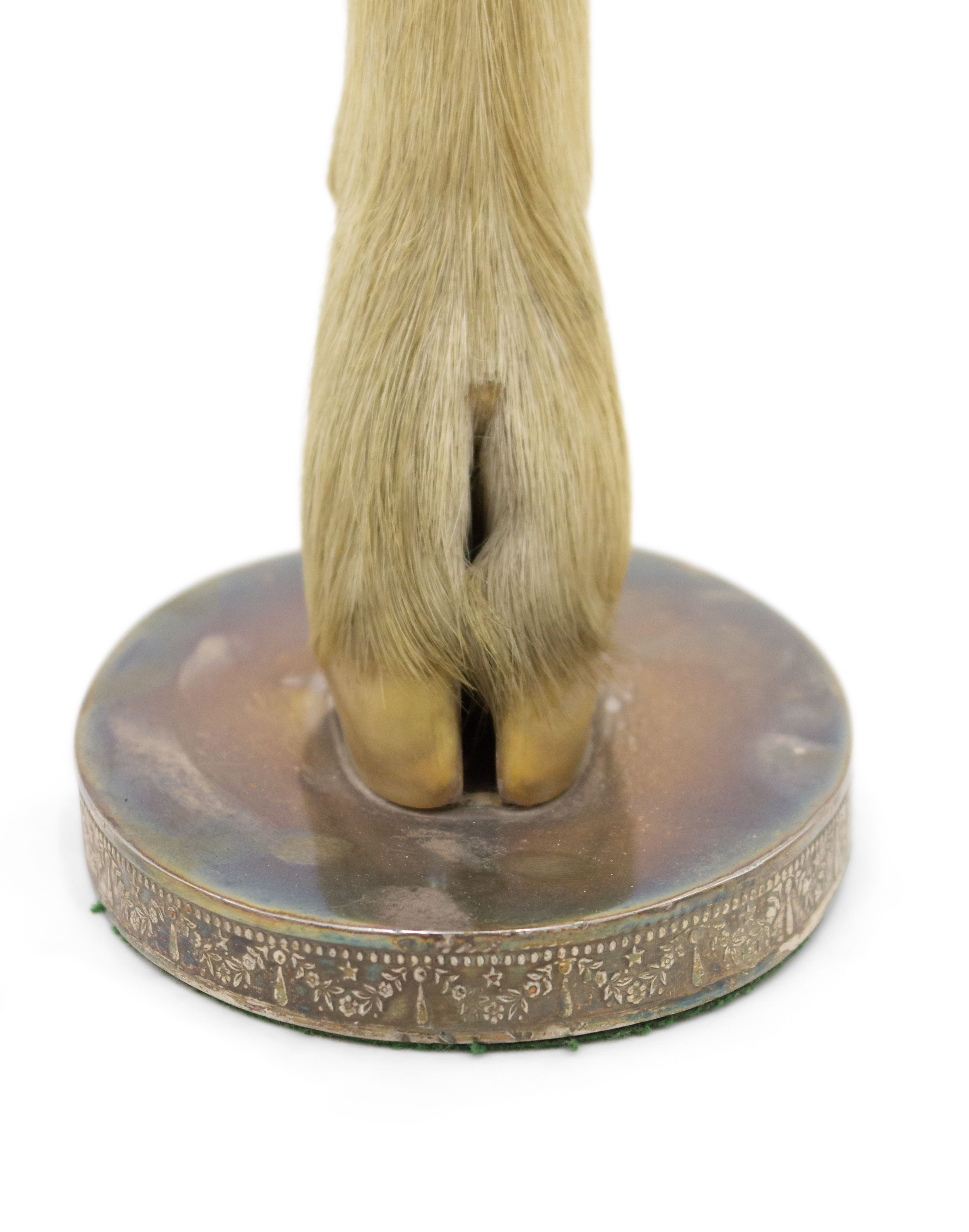 PAIR of English (19/20th Century) taxidermy deer hoof candlesticks with oval silver base and top (PRICED AS PAIR)