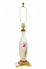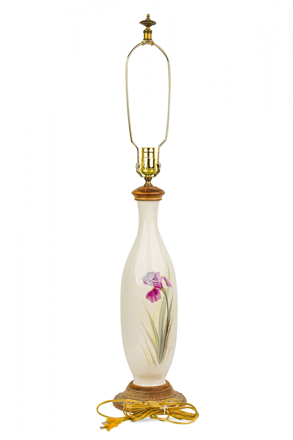 English Victorian style White Ceramic Purple Iris Motif Table Lamp