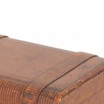 English Victorian-style rectangular brown leather box with strape design and gold escutcheon and four compartments