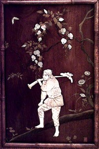 Style: Bamboo Materials & Techniques: Glass, veneer, wood, bamboo, rosewood, pediment Category: Cabinets & Case Goods, Bedroom, Bamboo