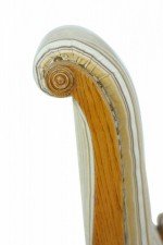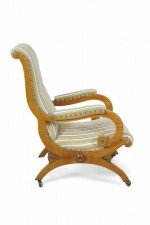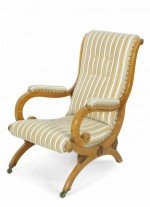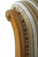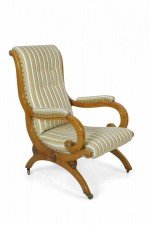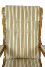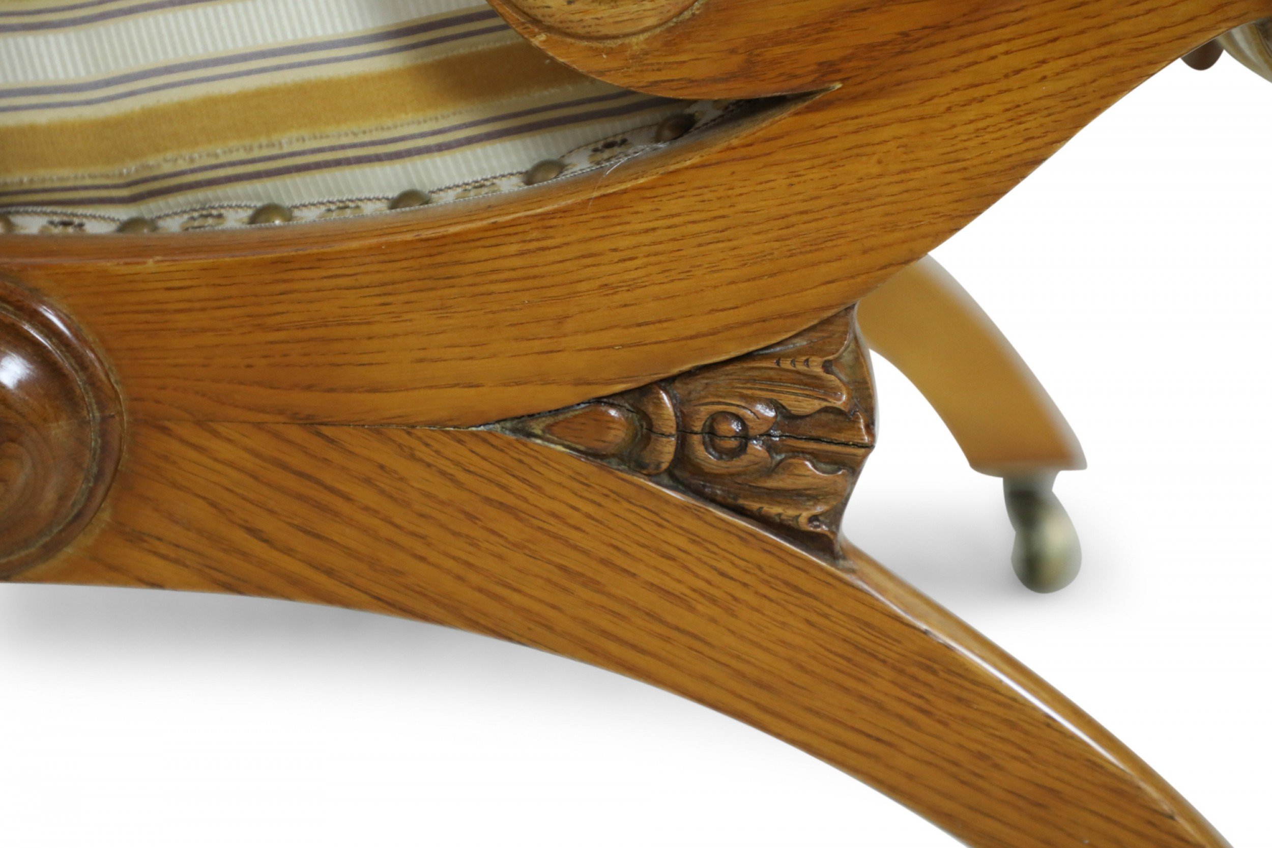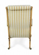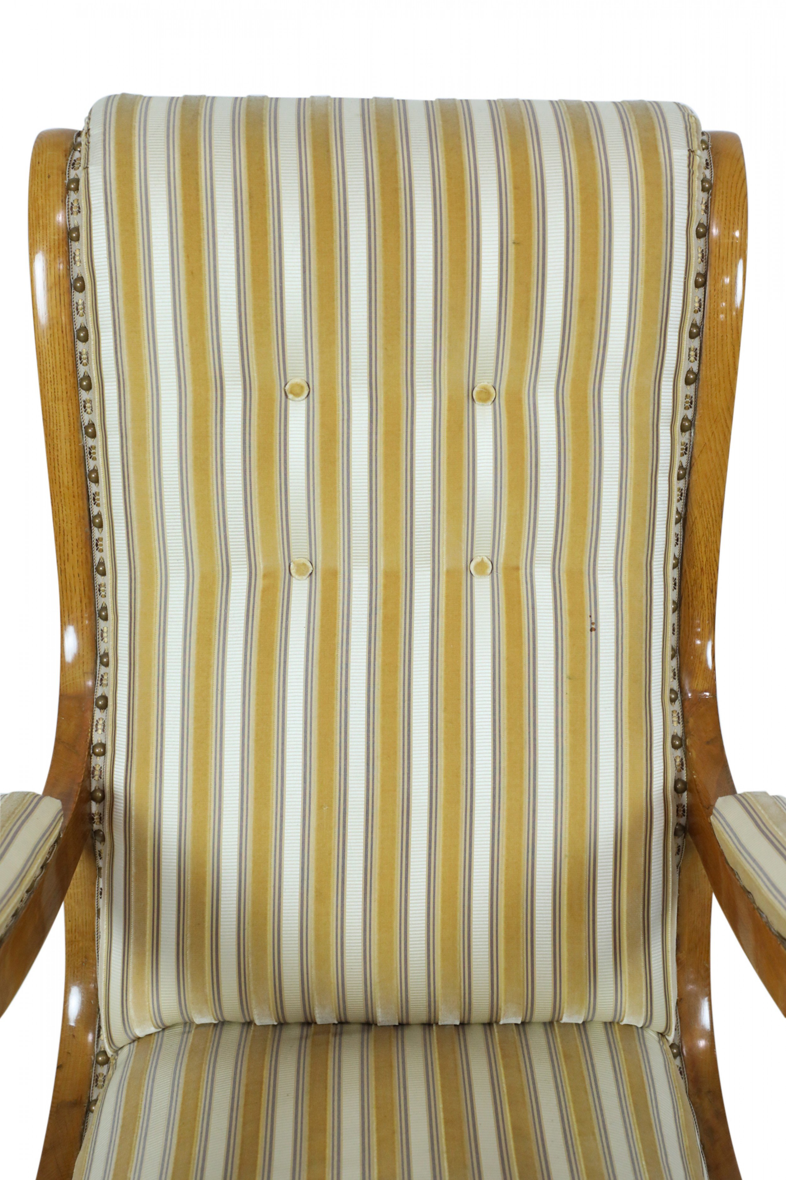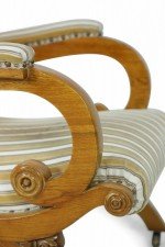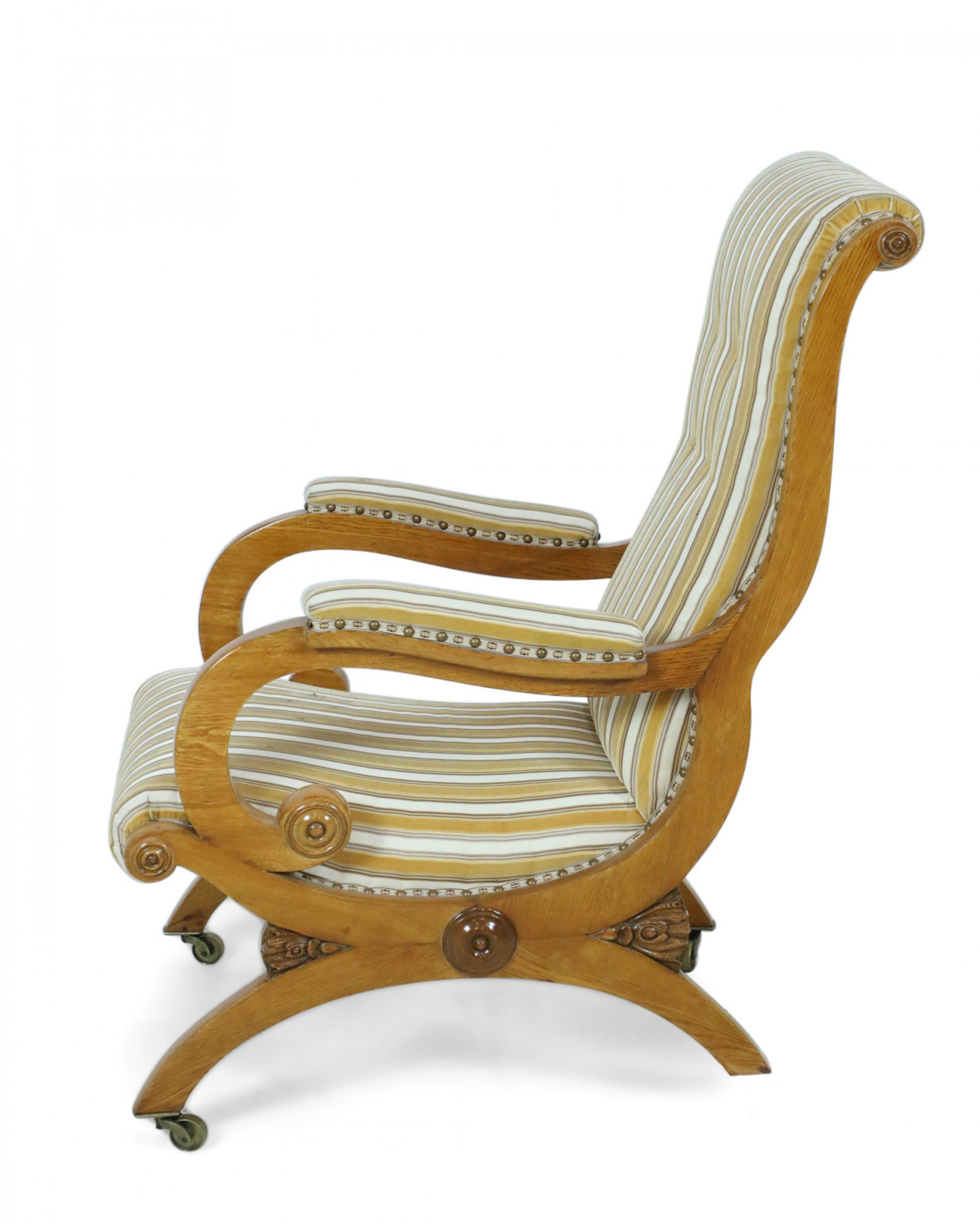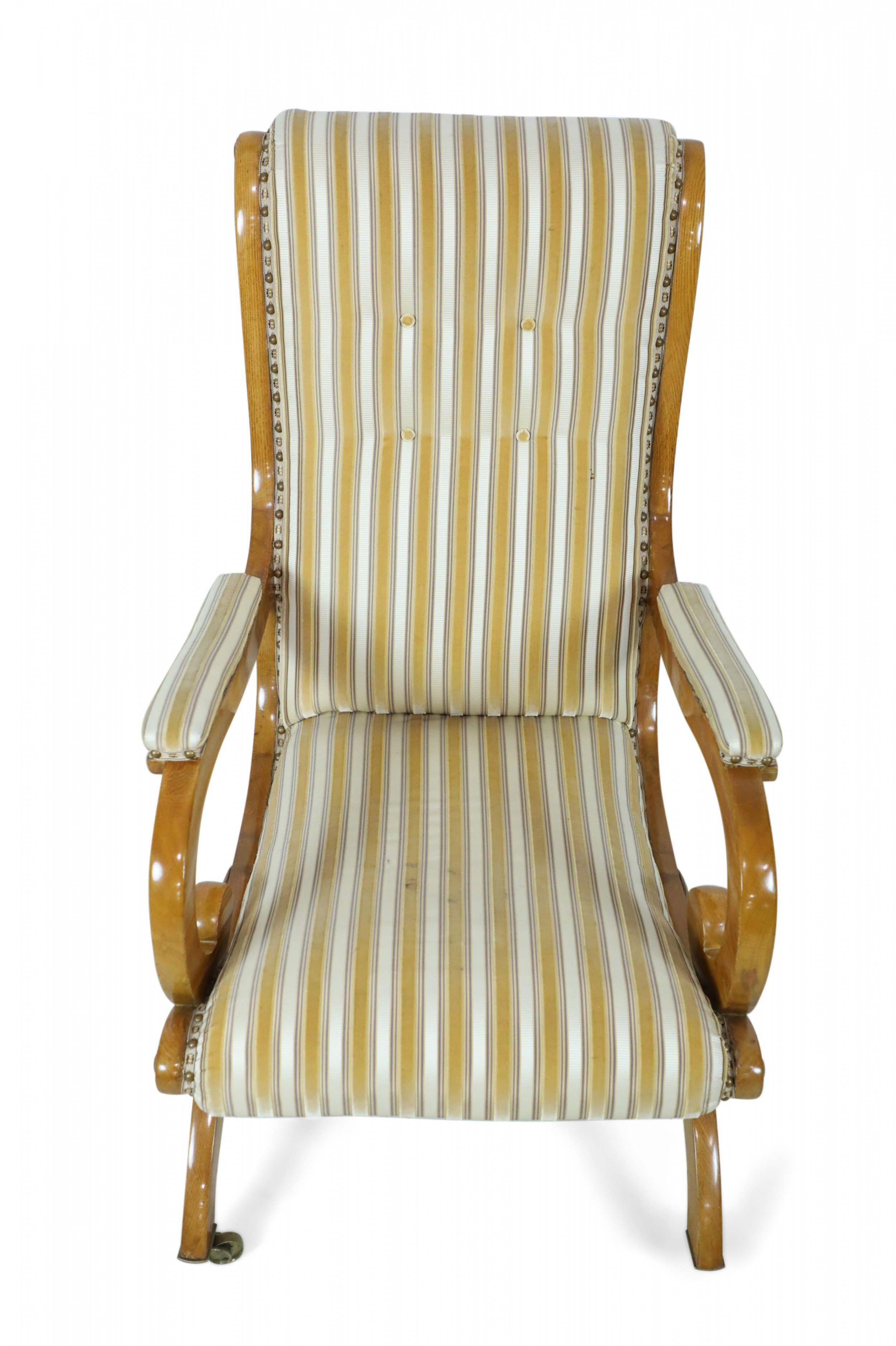 English Victorian Blond Wood Scroll Armchair with Striped Upholstery