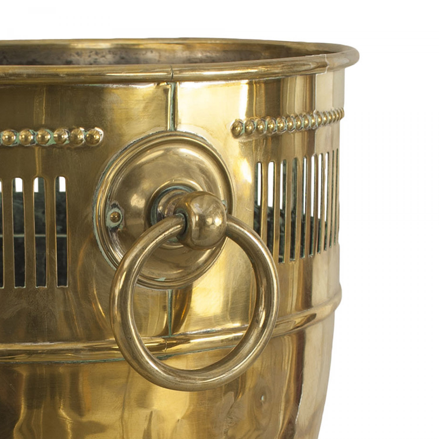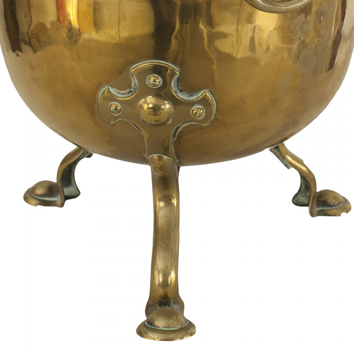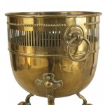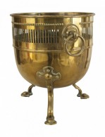 English Victorian brass jardiniere standing on 3 legs and having 2 ring handles