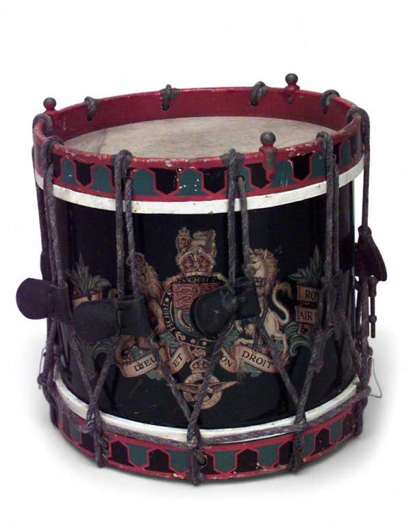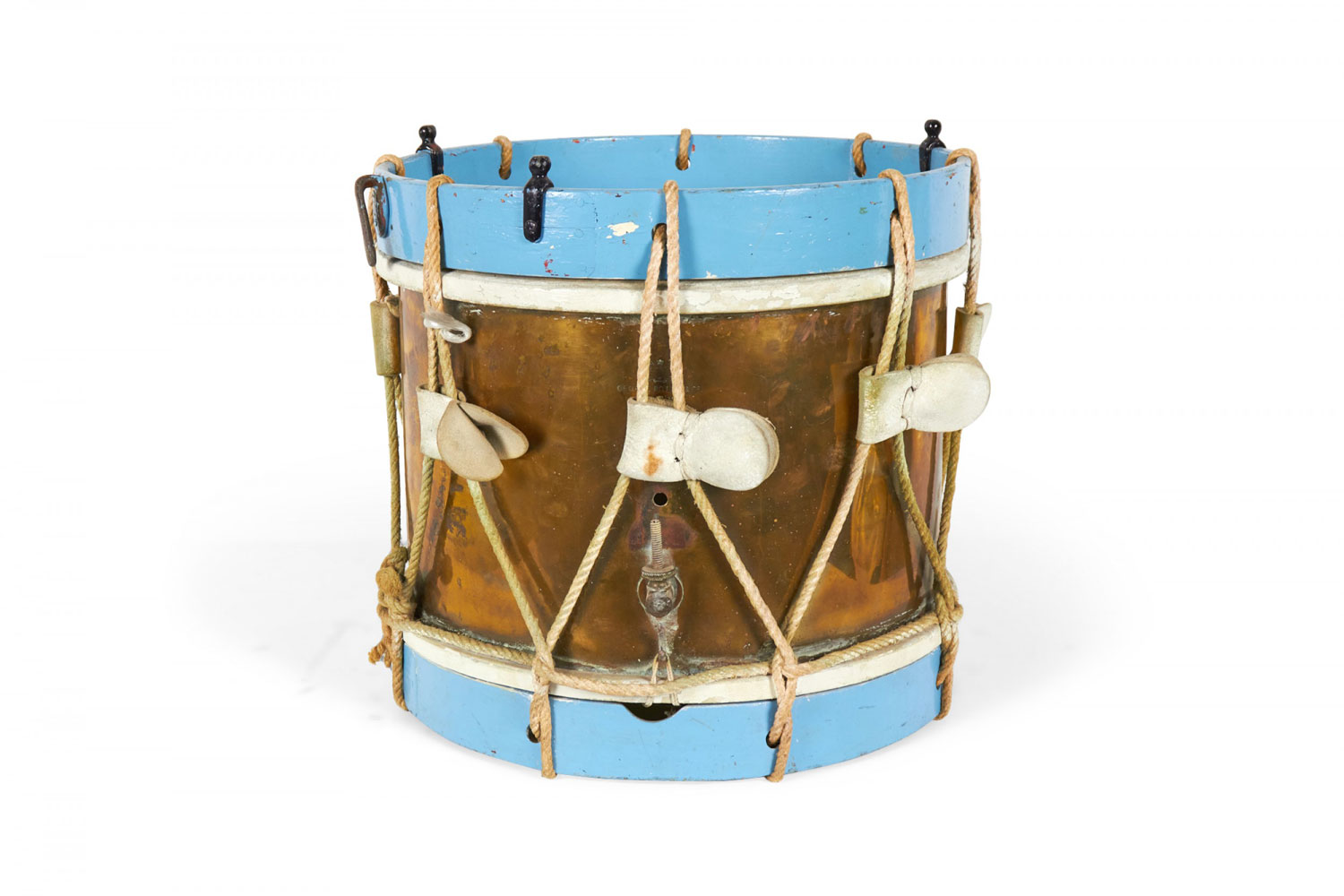 2 English Victorian brass and blue painted Regimental drums (PRICED EACH)