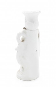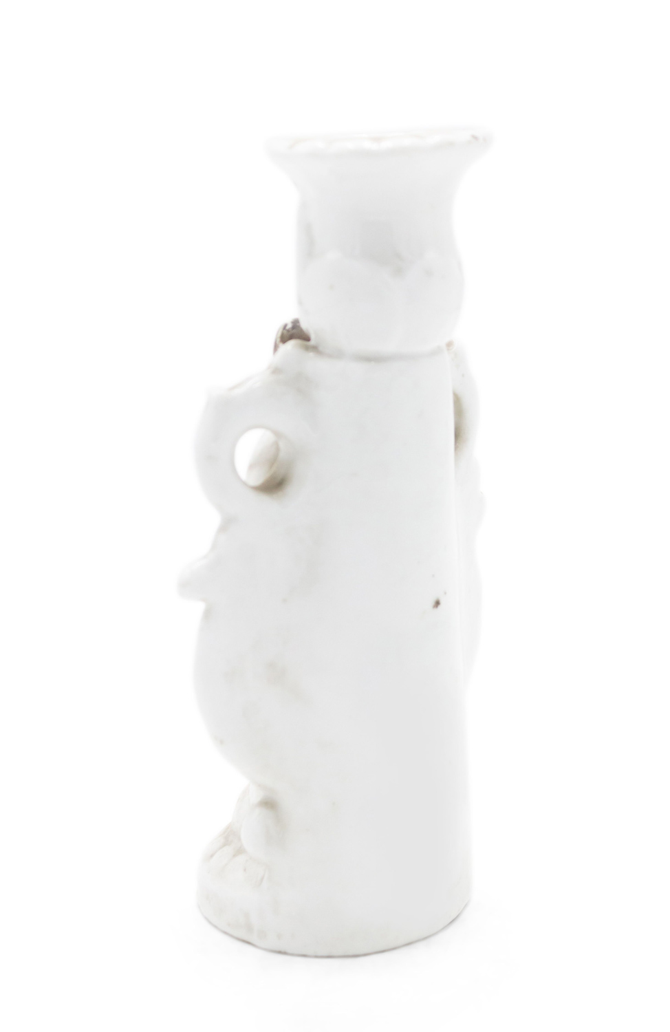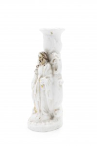 English Victorian Chelsea porcelain candlestick with religious figure..
