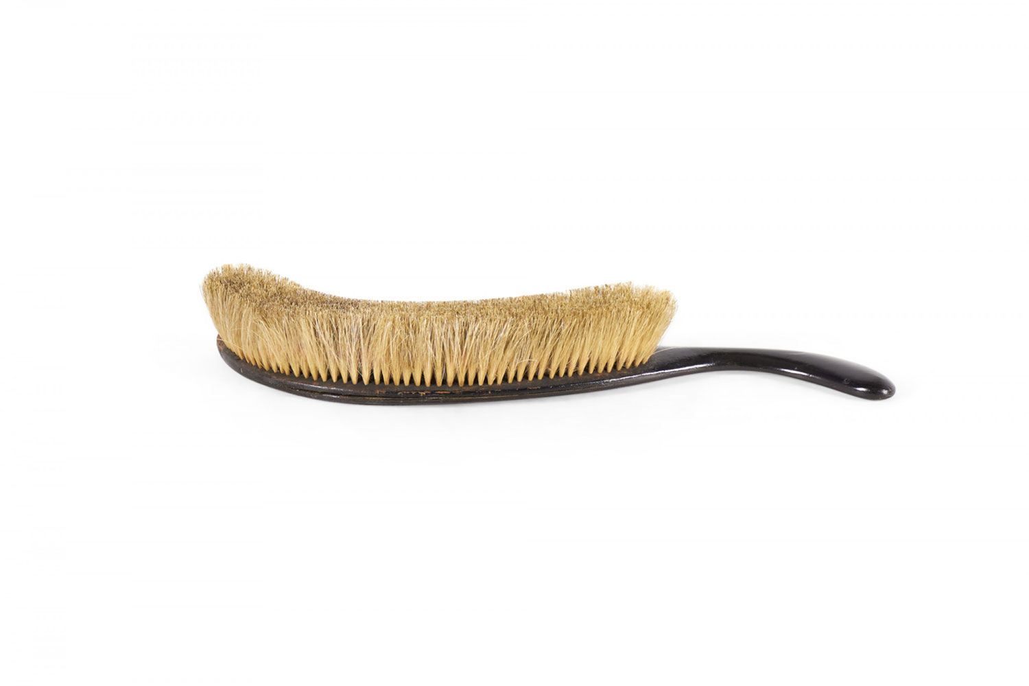 English Victorian black lacquered and Chinoiserie decorated scalloped butlers tray and brush with handle.