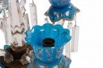 PAIR of similar English Victorian crystal and blue opaline Waterford style 5 arm candelabras (PRICED AS PAIR)