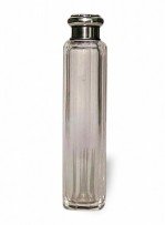 English Victorian tall and narrow 10 sided crystal perfume bottle with silver top.
