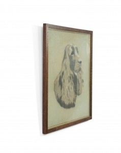 English Victorian Country style (19/20th Century) oak framed embroidery of English setter dog.