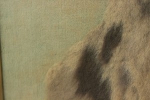 English Victorian Country style (19/20th Century) oak framed embroidery of English setter dog..