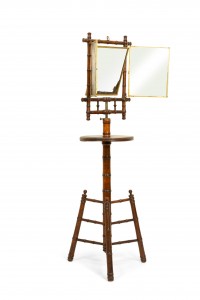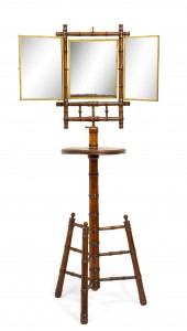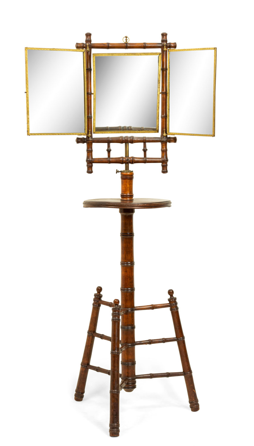 English Victorian Aesthetic Faux Bamboo Shaving Triptych Mirror