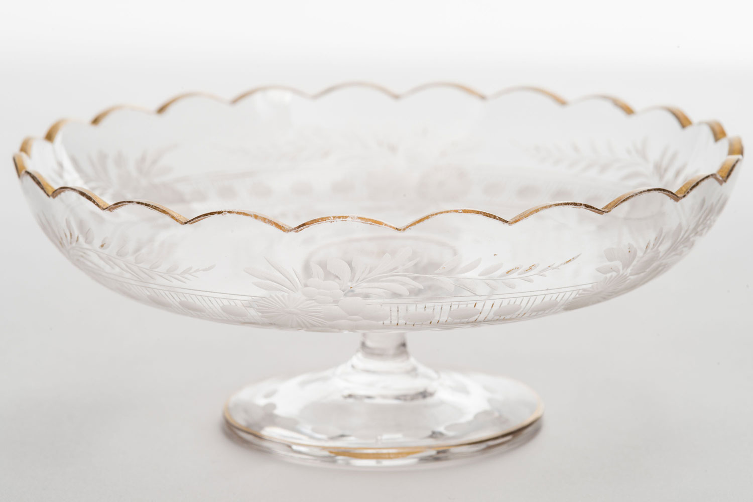 Style: English Materials & Techniques: Engraved, gilded, glass, scalloped Category: Dining Room, Accessories/Décor/Bric-a-Brac
