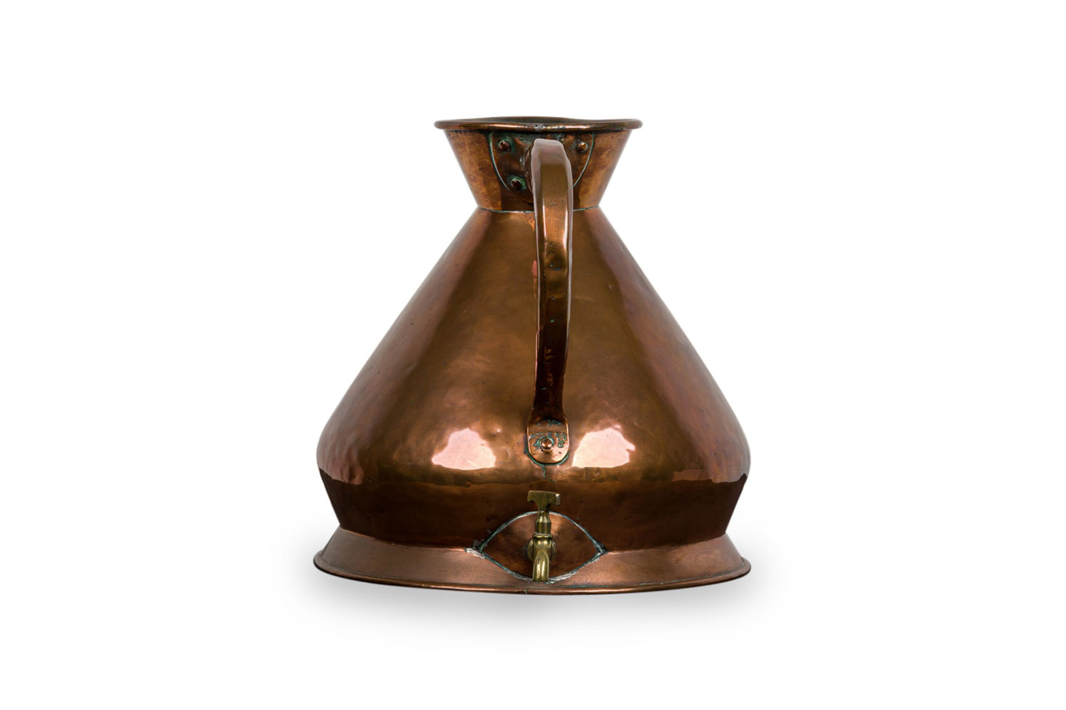 English Victorian copper four gallon jug with a brass spigot attached for dispensing water (CROWN MARKED: VR 22)(FARROW AND JACKSON)