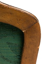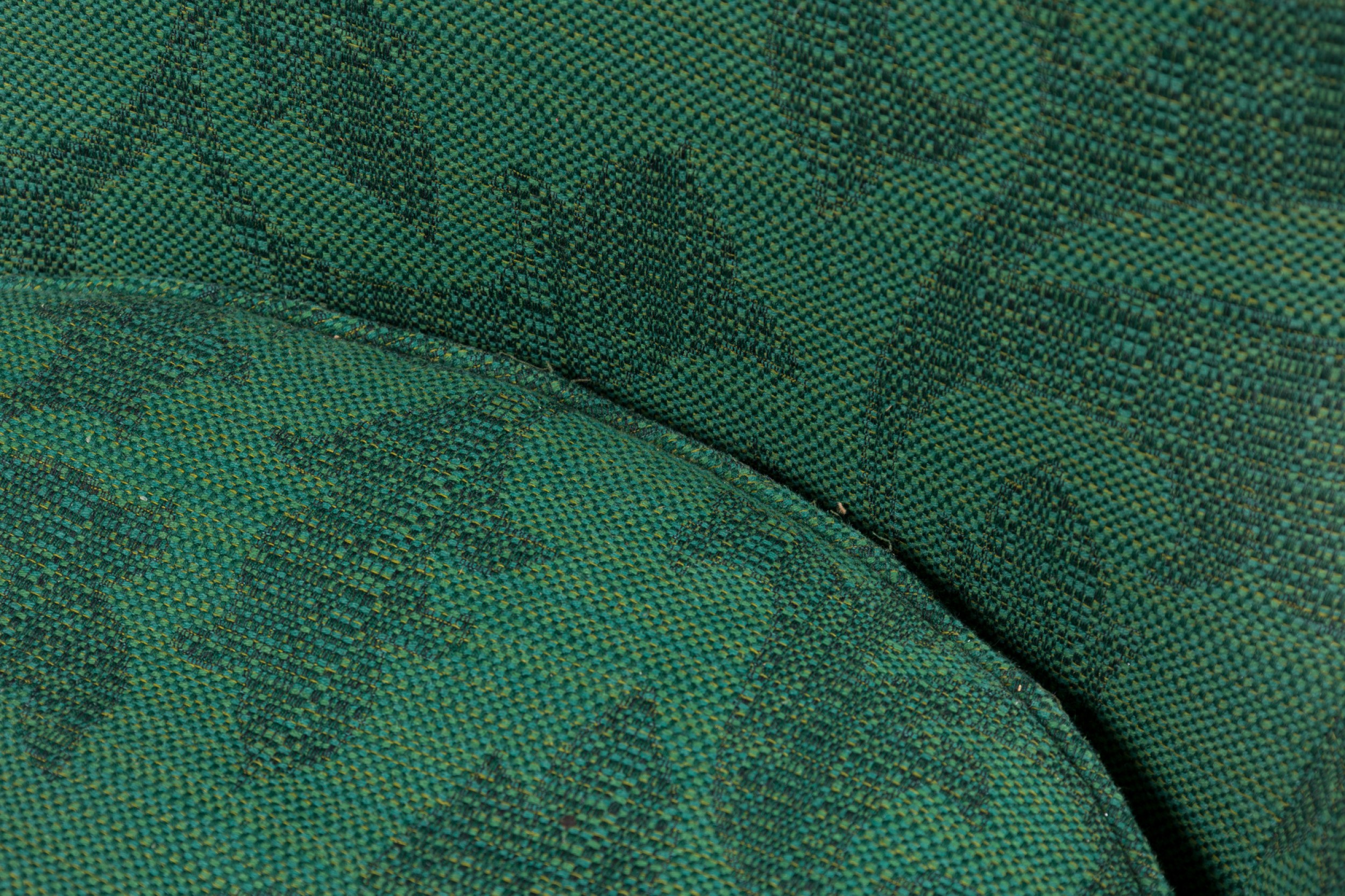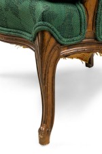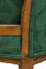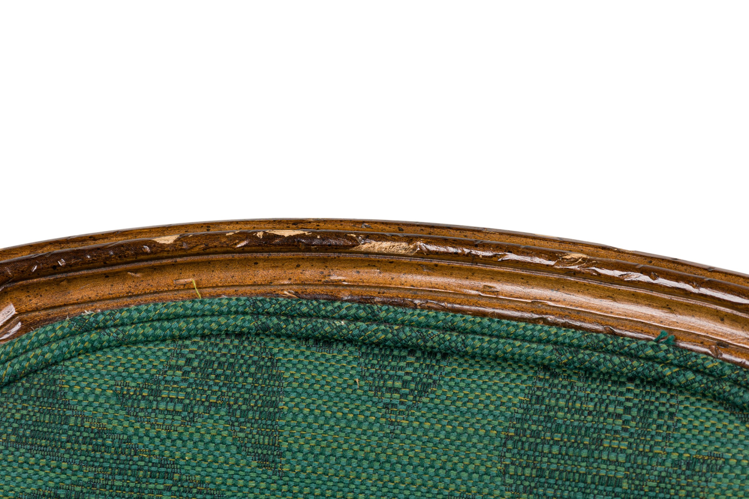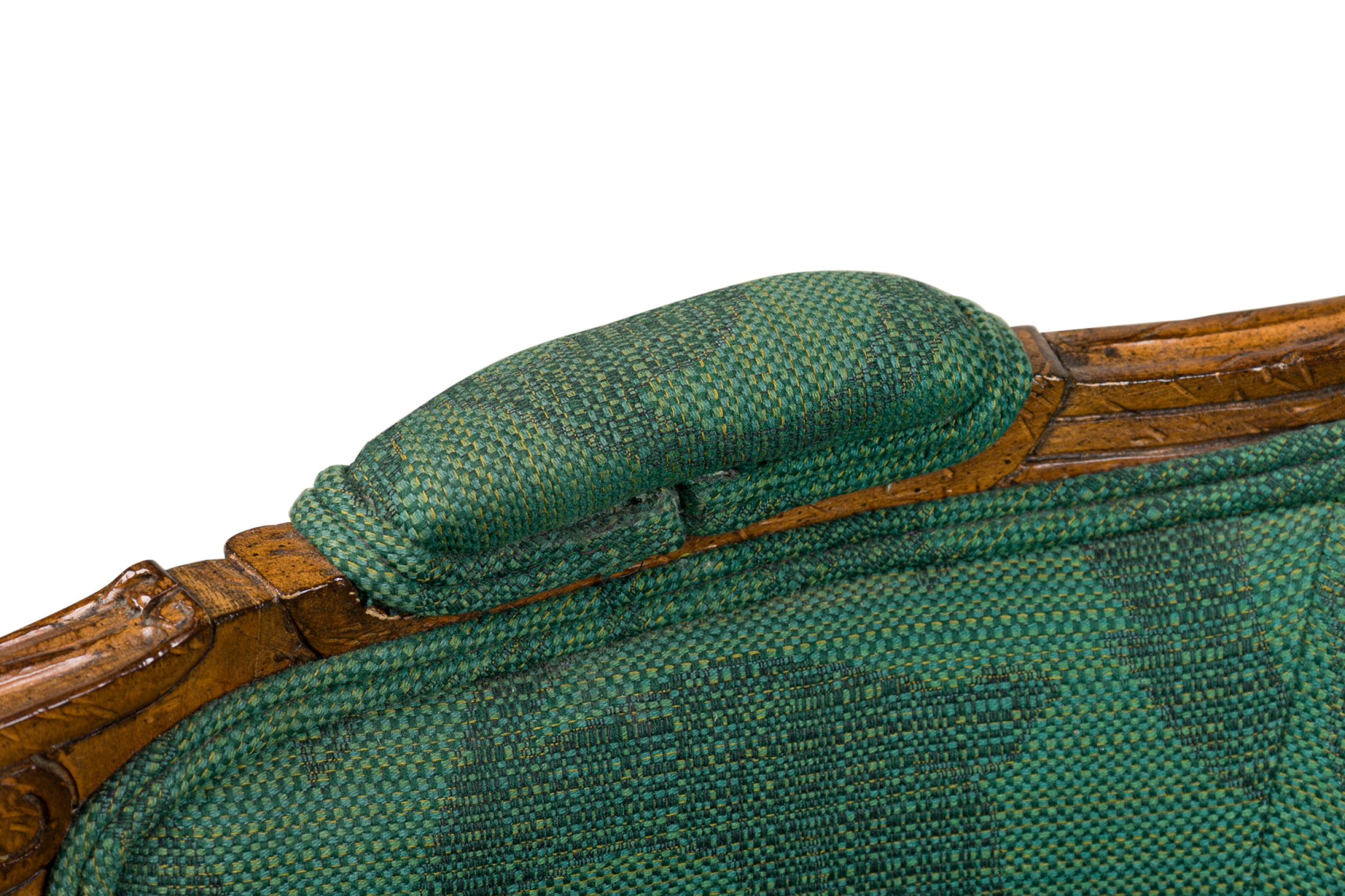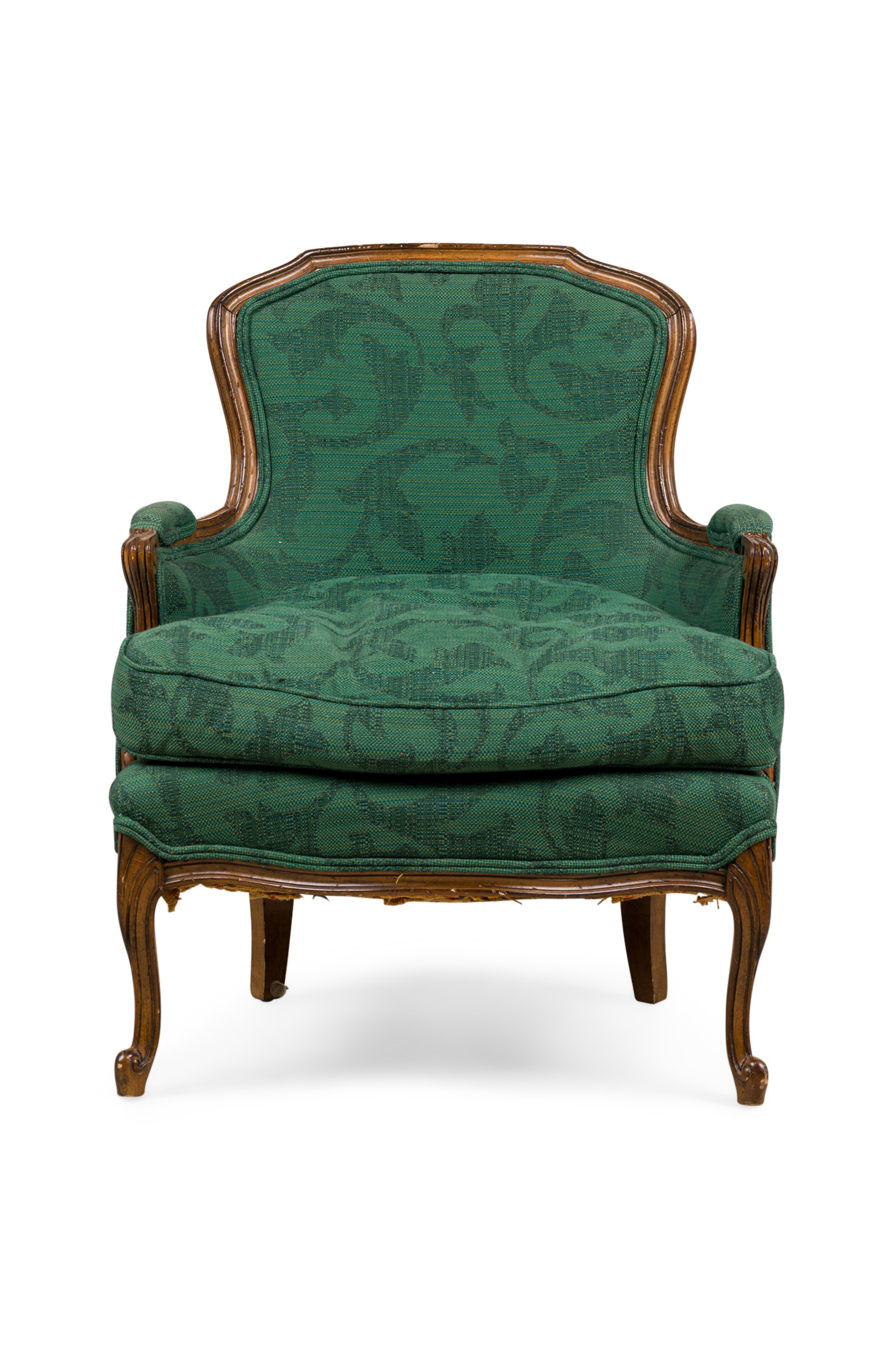 French LXV style Bergere (20th Century) armchair with green upholstery and seat cushion.