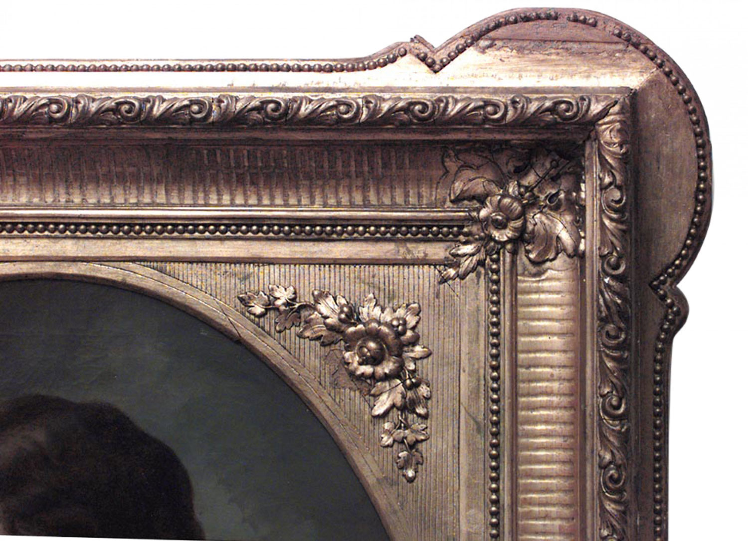 English Victorian gilt framed oil painting portrait of 19th Century lady leaning on green pillow