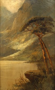 English Victorian Landscape of a Lake by Mountains