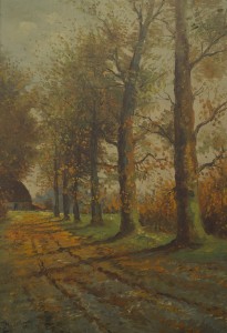 English Victorian Landscape of Tall Trees on a Road