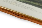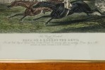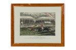 English Victorian Lithograph of an Equestrian Scene depicting two competing horses in a maple and gilt frame