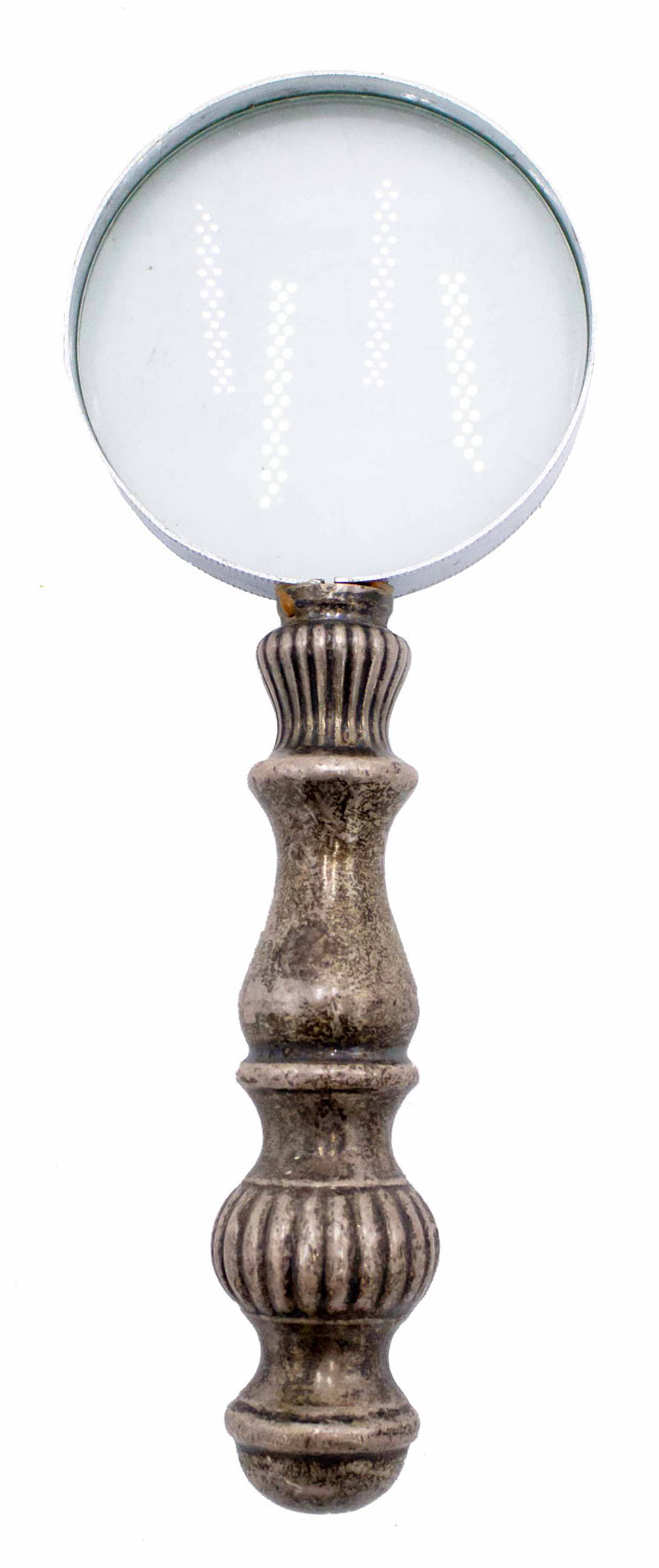 English Victorian magnifying glass with a silver plate handle with a fluted design..