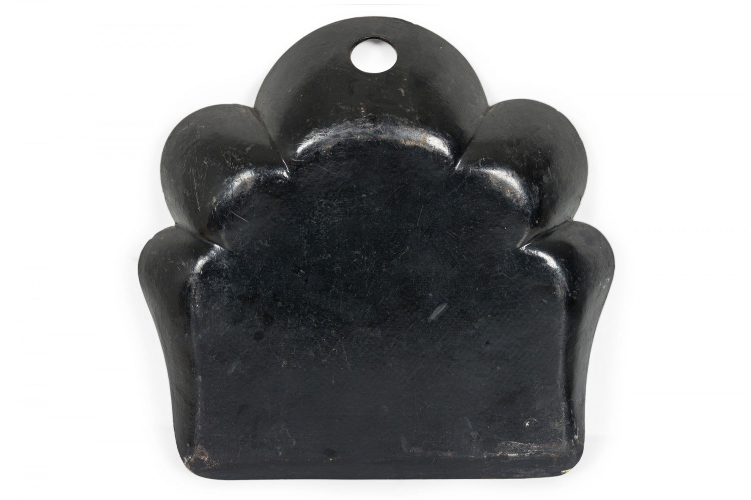 English Victorian papier mache fan shaped silent butler tray with gold stenciled design.