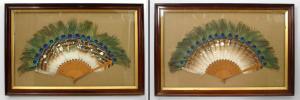 Pair of English Victorian Peacock-Feather Fan Wall Plaques