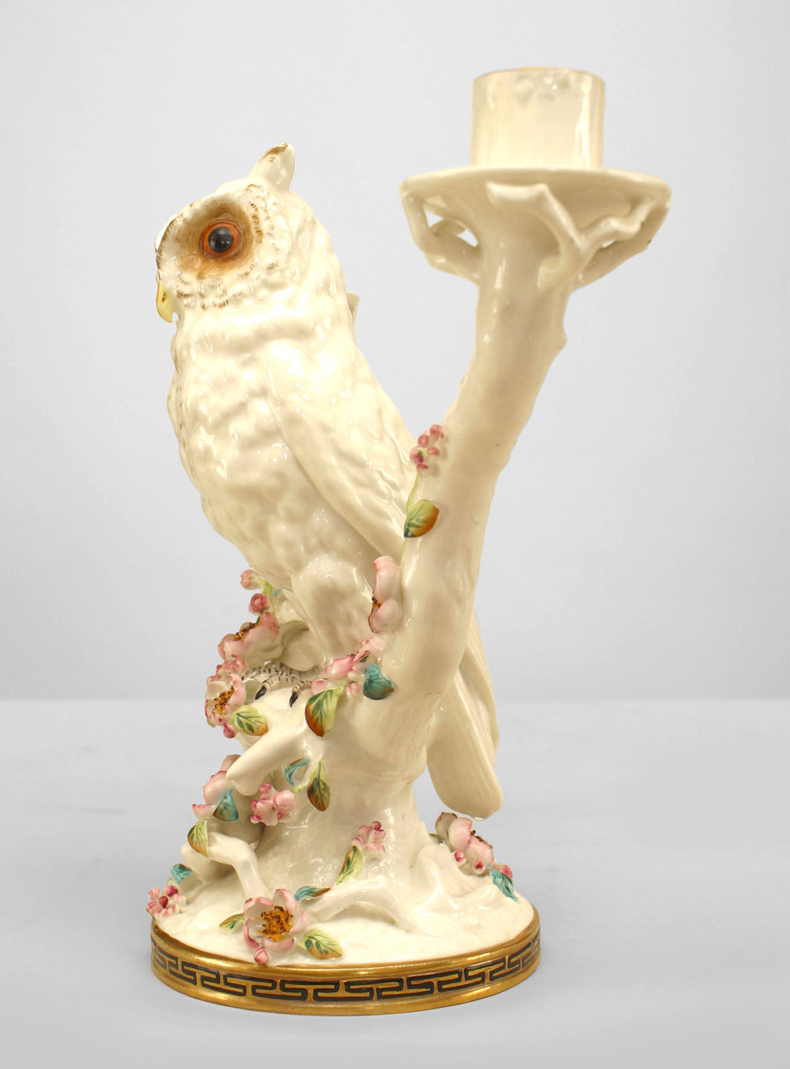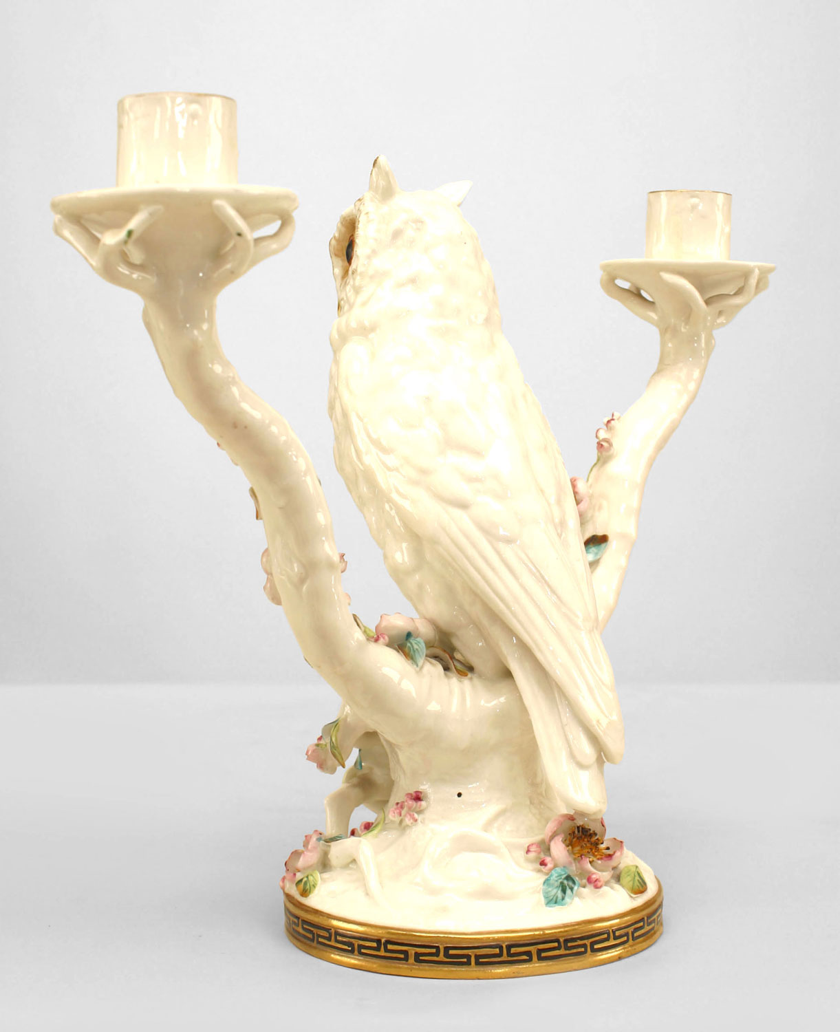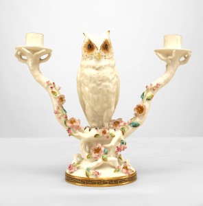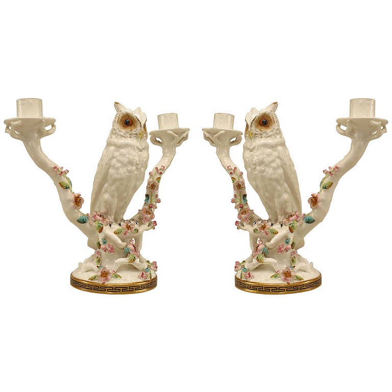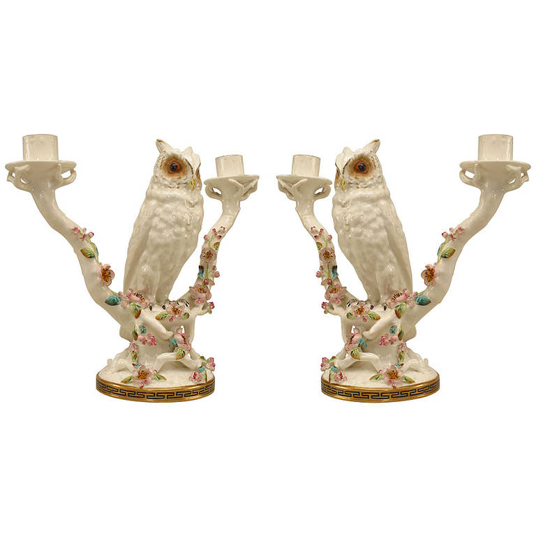 Pair of English Victorian Porcelain Owl Candelabras