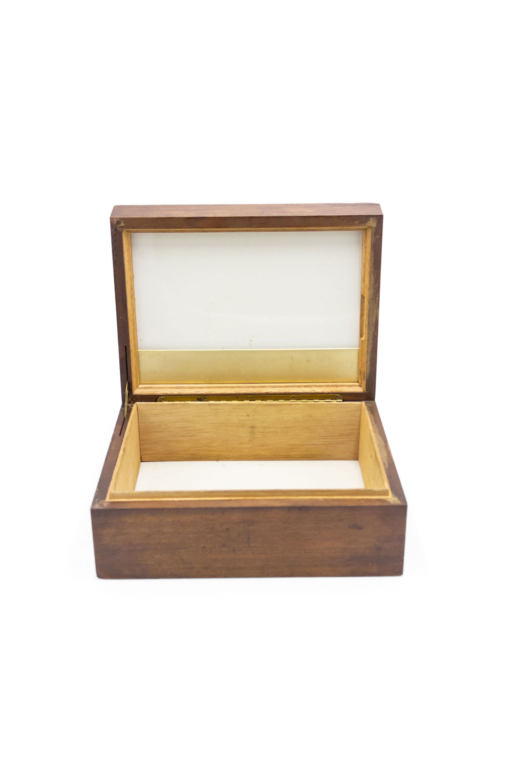 Style: English Materials & Techniques: Wood, brass, rosewood, inlaid Category: Accessories/Décor/Bric-a-Brac Condition: Vintage condition