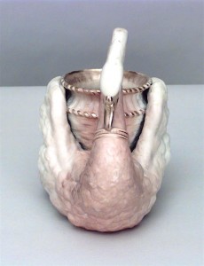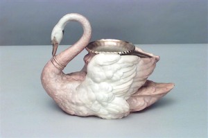 English Victorian Royal Worcester porcelain swan shaped vase with wings.