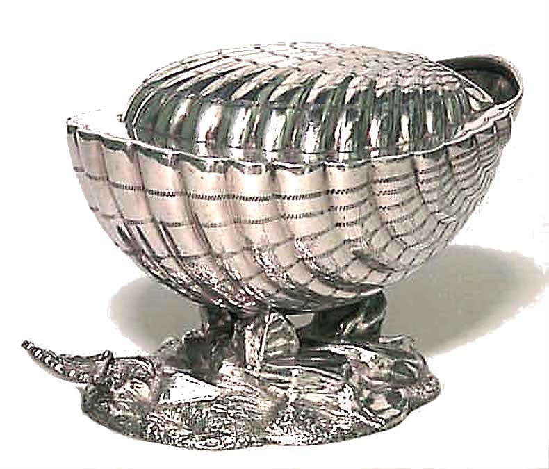 Style: English Materials & Techniques: Silver, silver, scalloped, motif Category: Dining Room