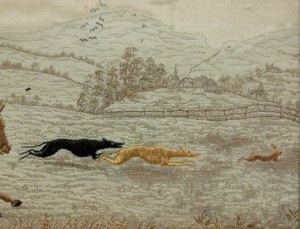 Pair of English Victorian Silk Embroidered Hunting Scenes