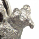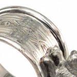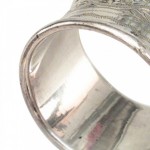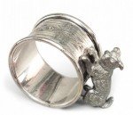English Victorian silver plate napkin ring with etched design and dog on hind legs.
