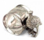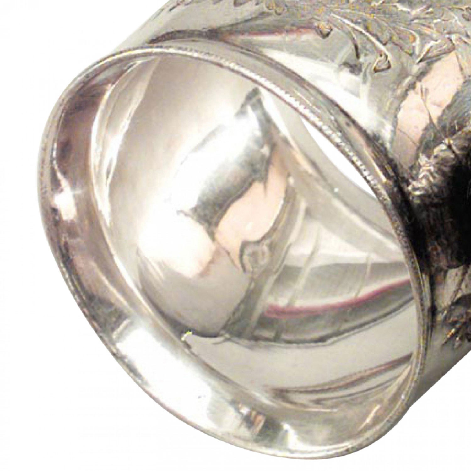 English Victorian silver plate napkin ring with etched design and emu bird figure