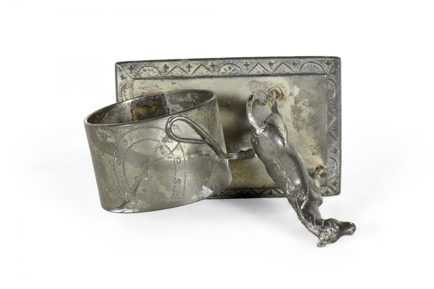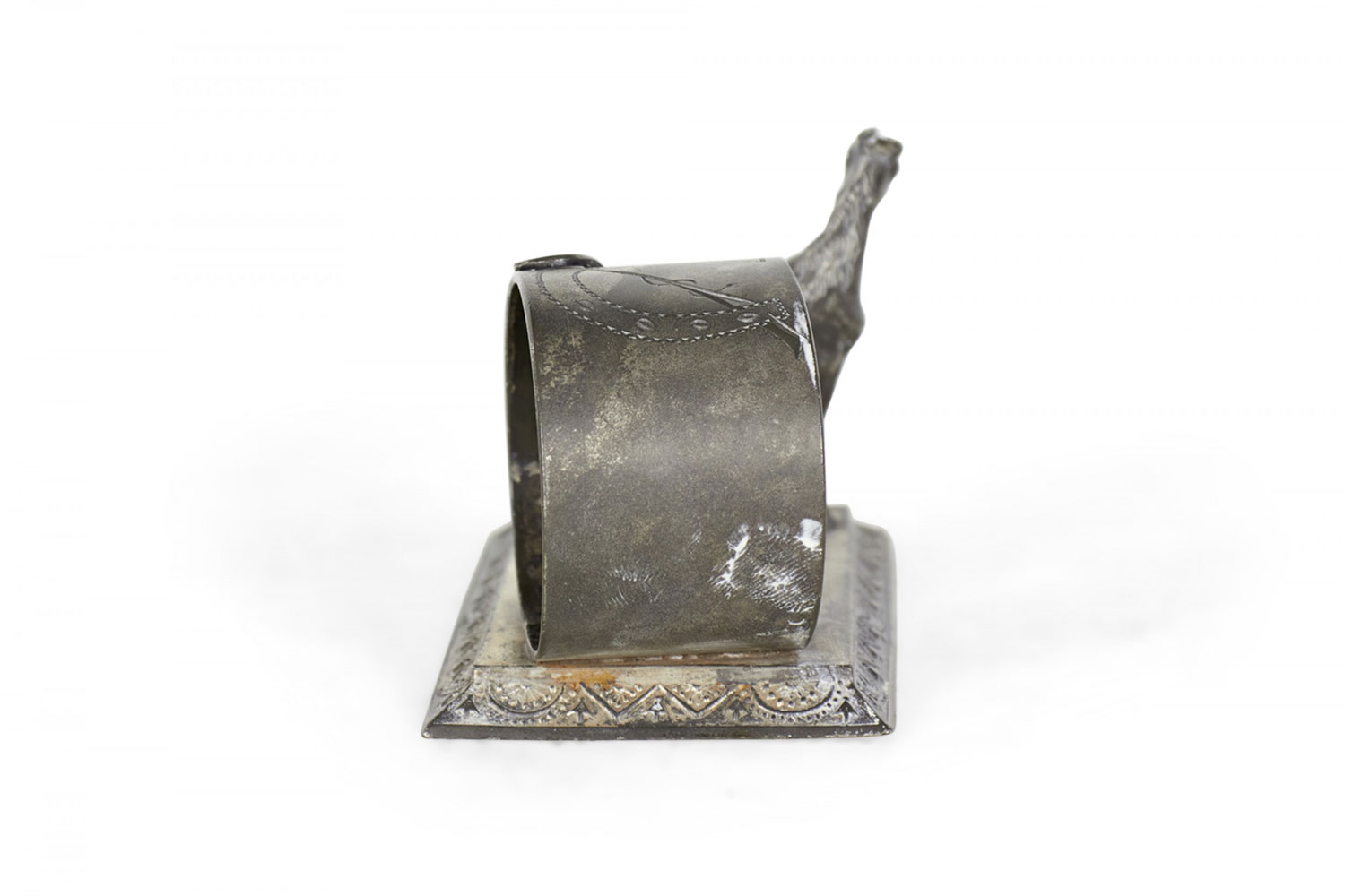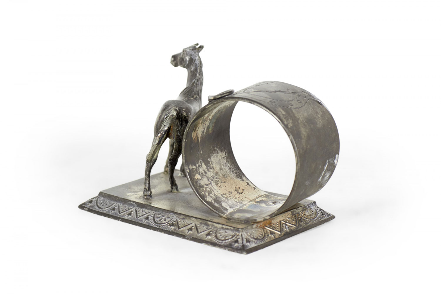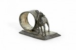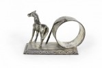 English Victorian silver plate napkin ring with horse and whip