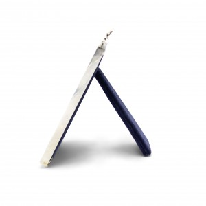 English Victorian silver-plate easel picture frame with oval inset and bow knot top..