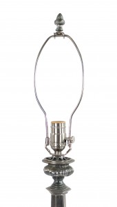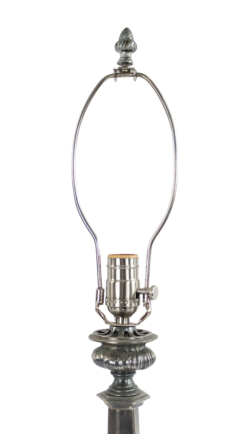 Style: English Materials & Techniques: Oak, silver Category: Lighting Condition: Ships without a shade