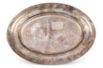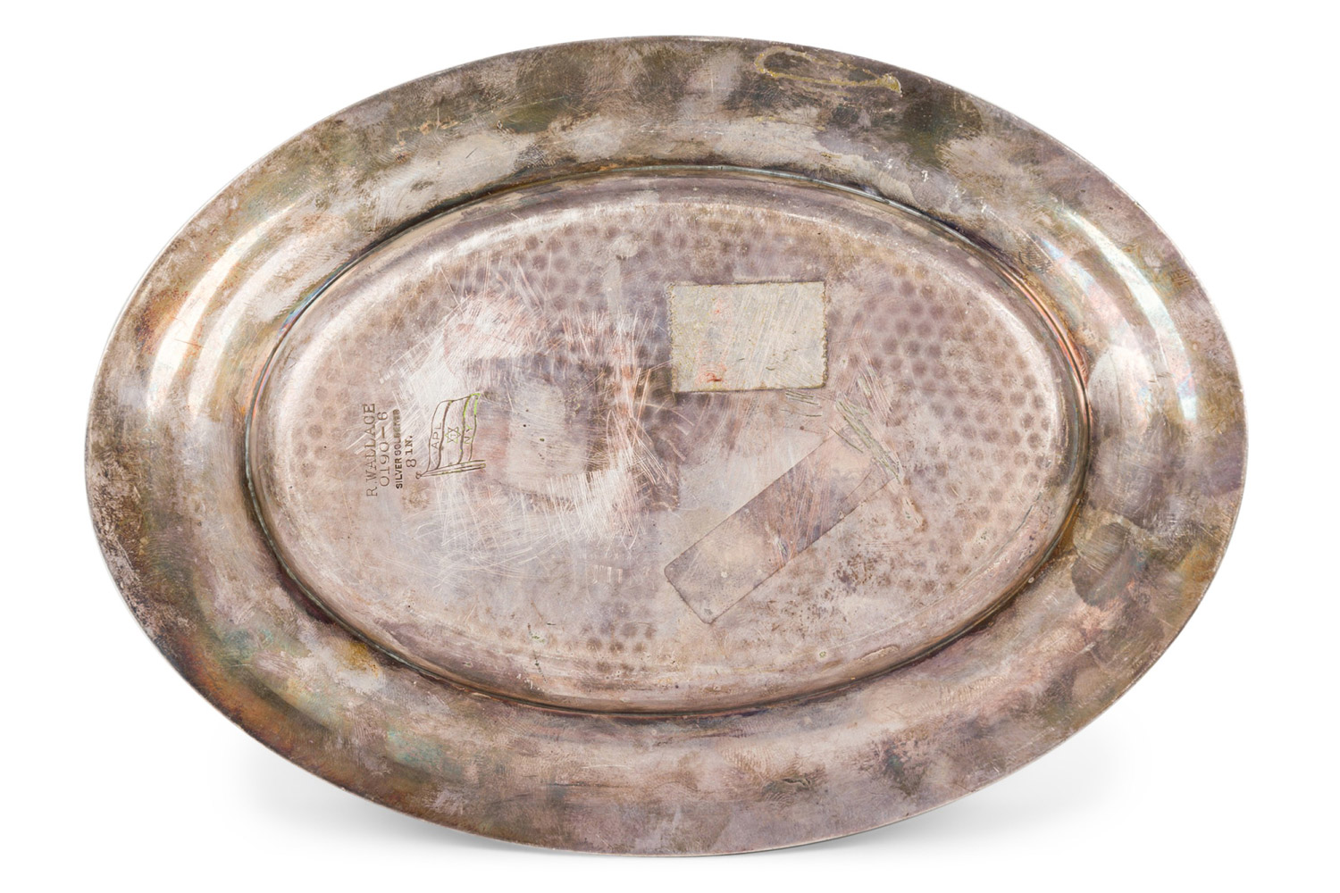 English Victorian oval silver plate tray with fluted edge (stamped R. Wallace..