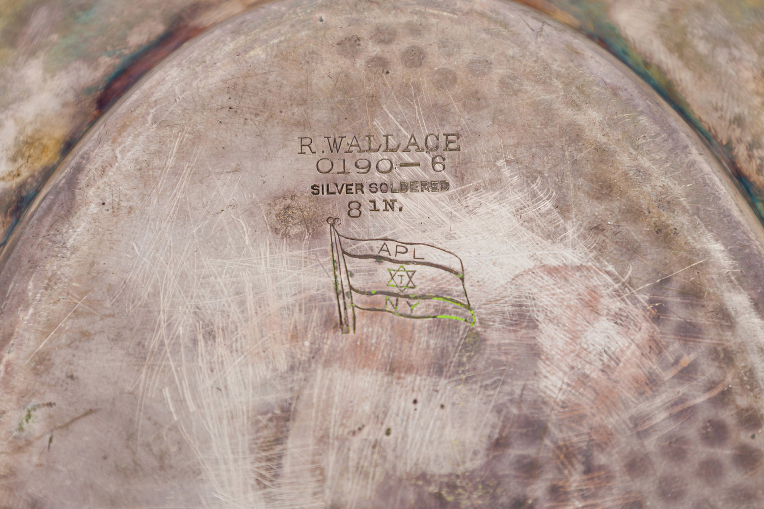 English Victorian oval silver plate tray with fluted edge (stamped R. Wallace.
