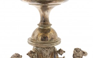 Style: English Materials & Techniques: Glass, silver Category: Accessories/Décor/Bric-a-Brac, Dining Room Condition: One of the glasses Chipped