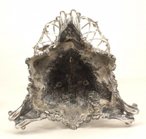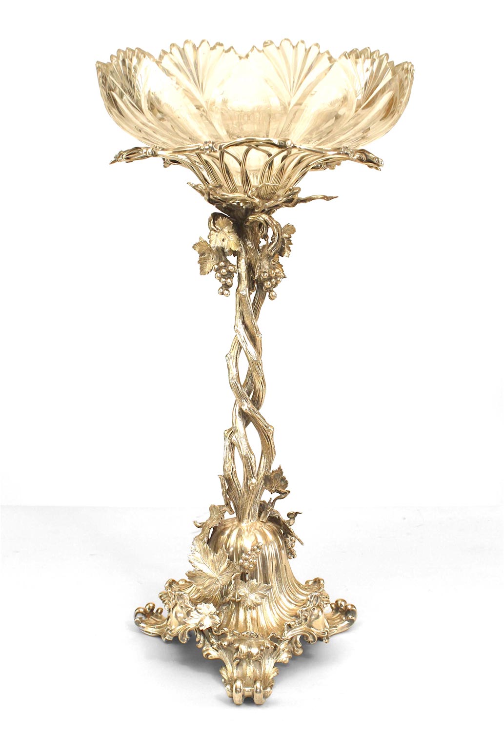 English Victorian silver plated compote with root and leaf cast tripartite base and removable cut-glass scalloped dish (19th Century)