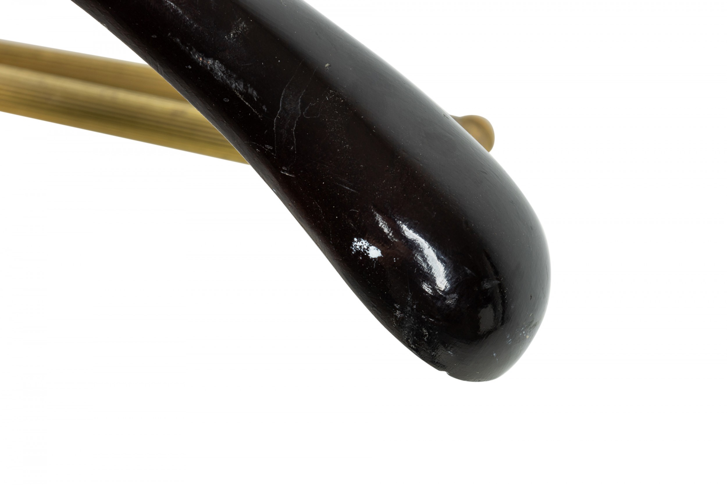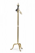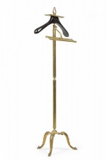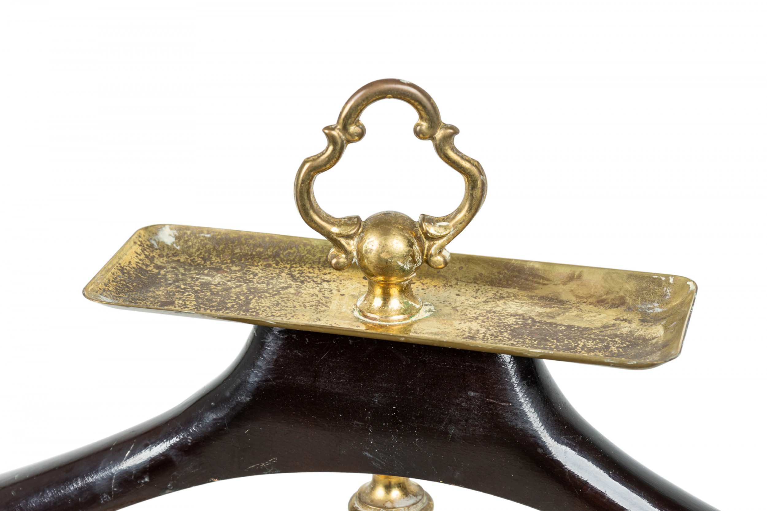 Style: English Materials & Techniques: Brass, metal, wood Category: Stands/Racks Condition: Slightly tarnished. Good; Wear consistent with age and use